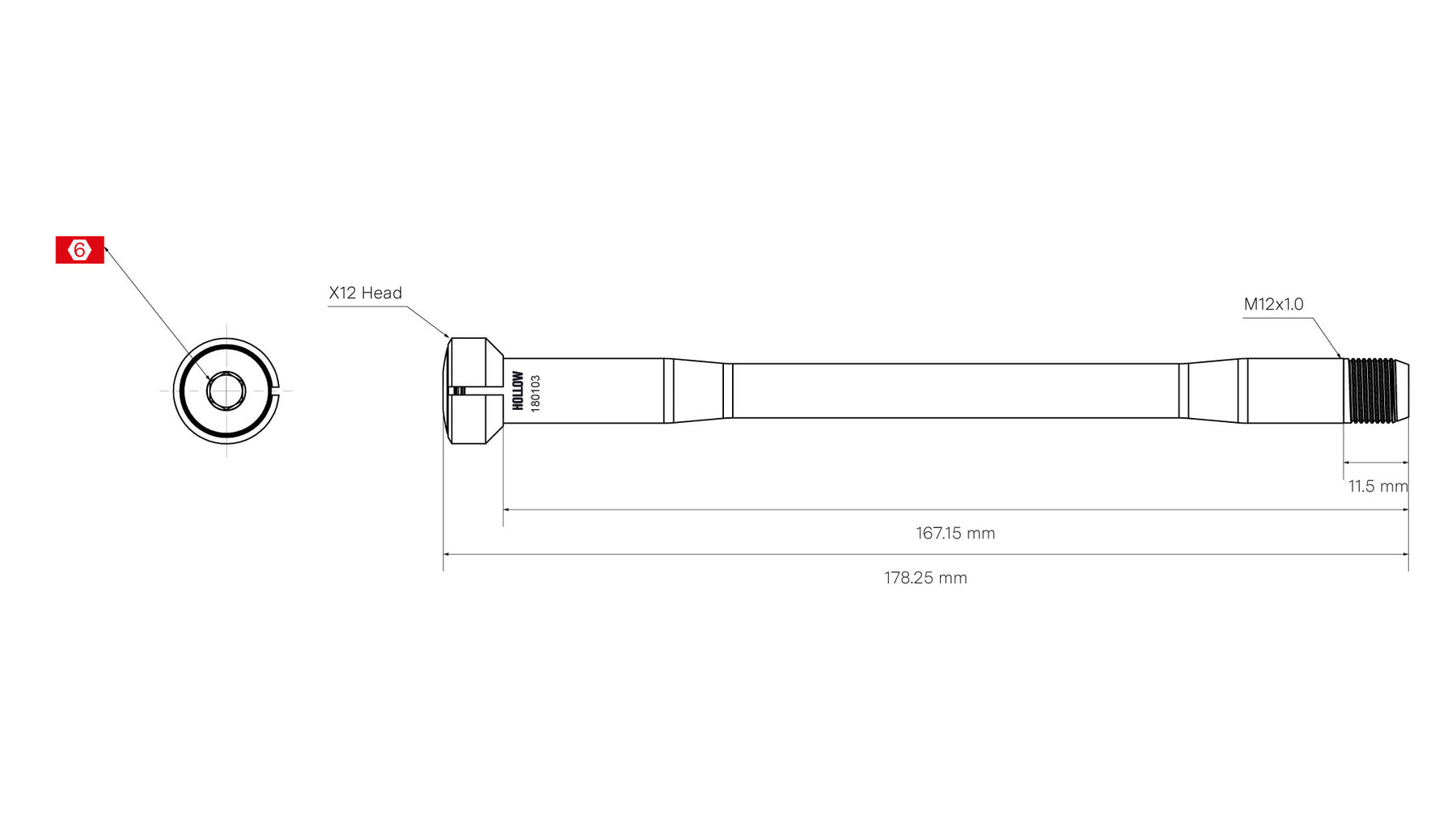 1x rear axle 168mm M12